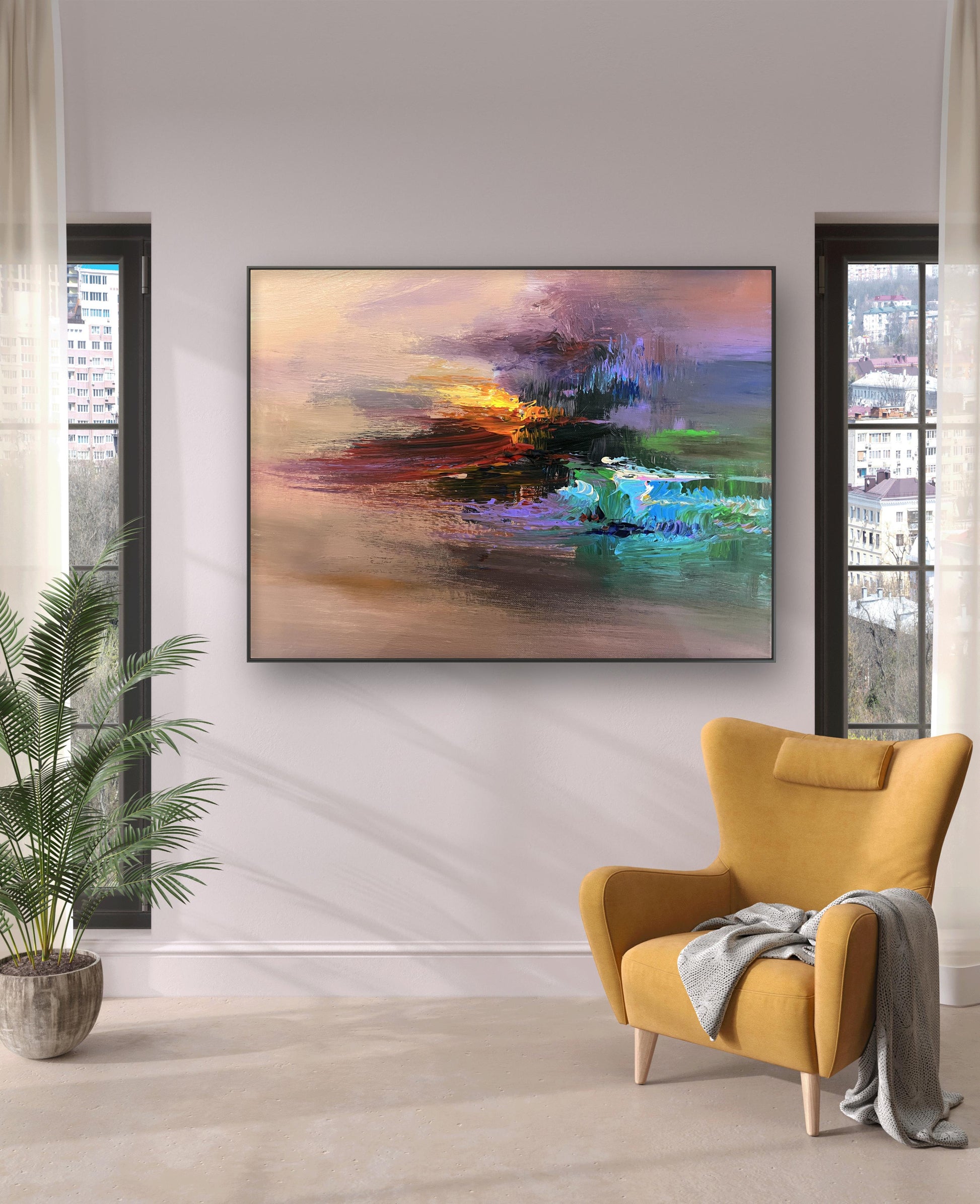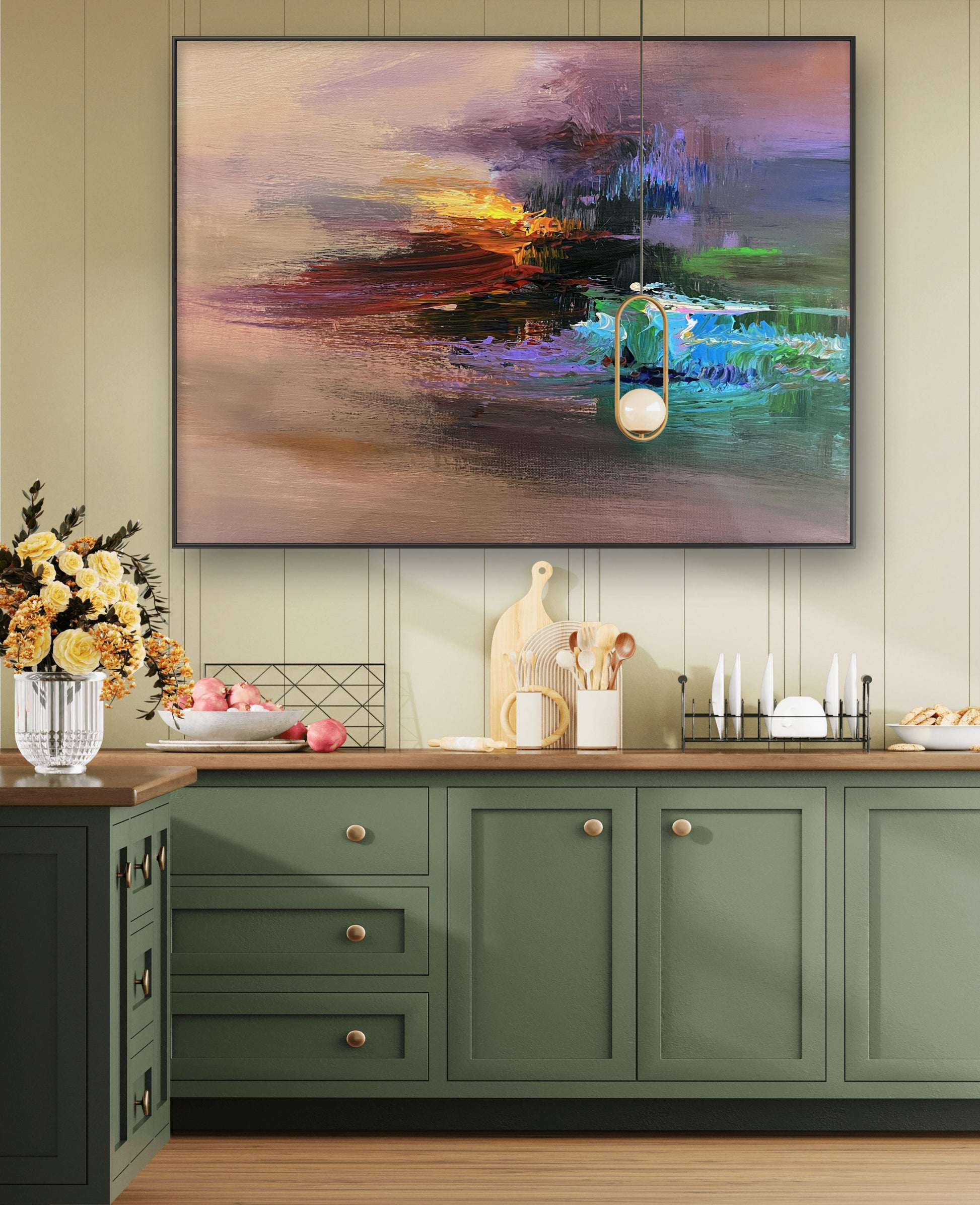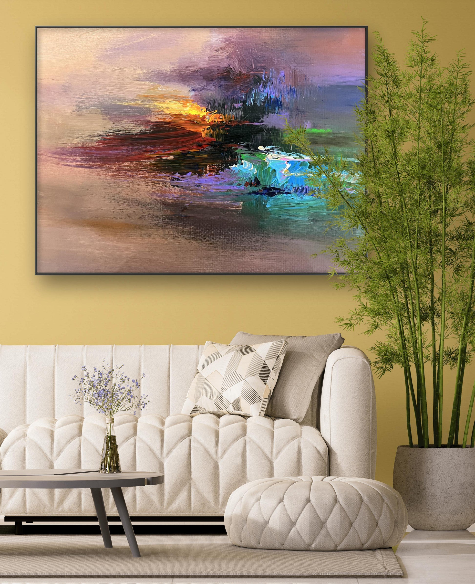 This exquisite abstract oil painting radiates warmth and elegance, adding sophisticated artistic flair to your space.