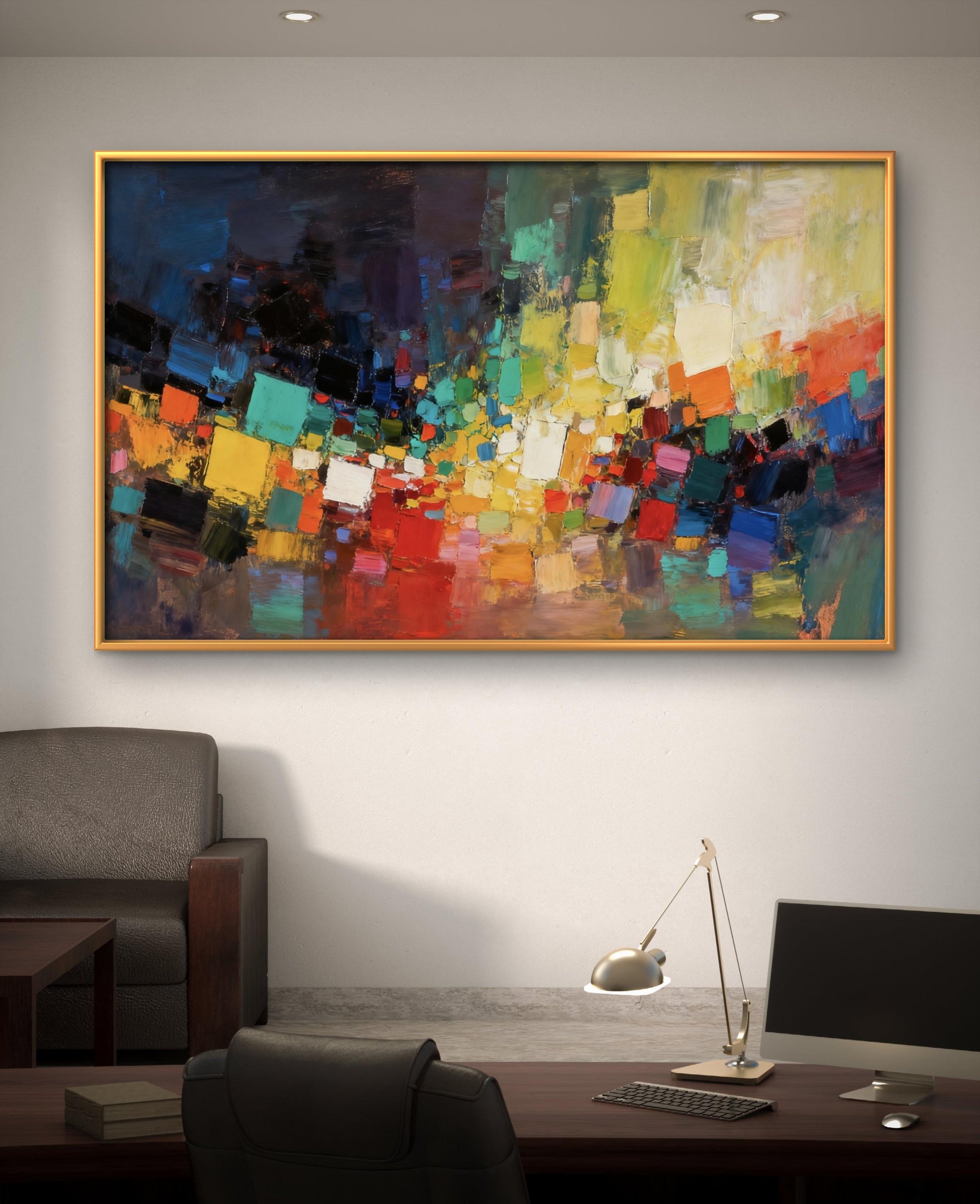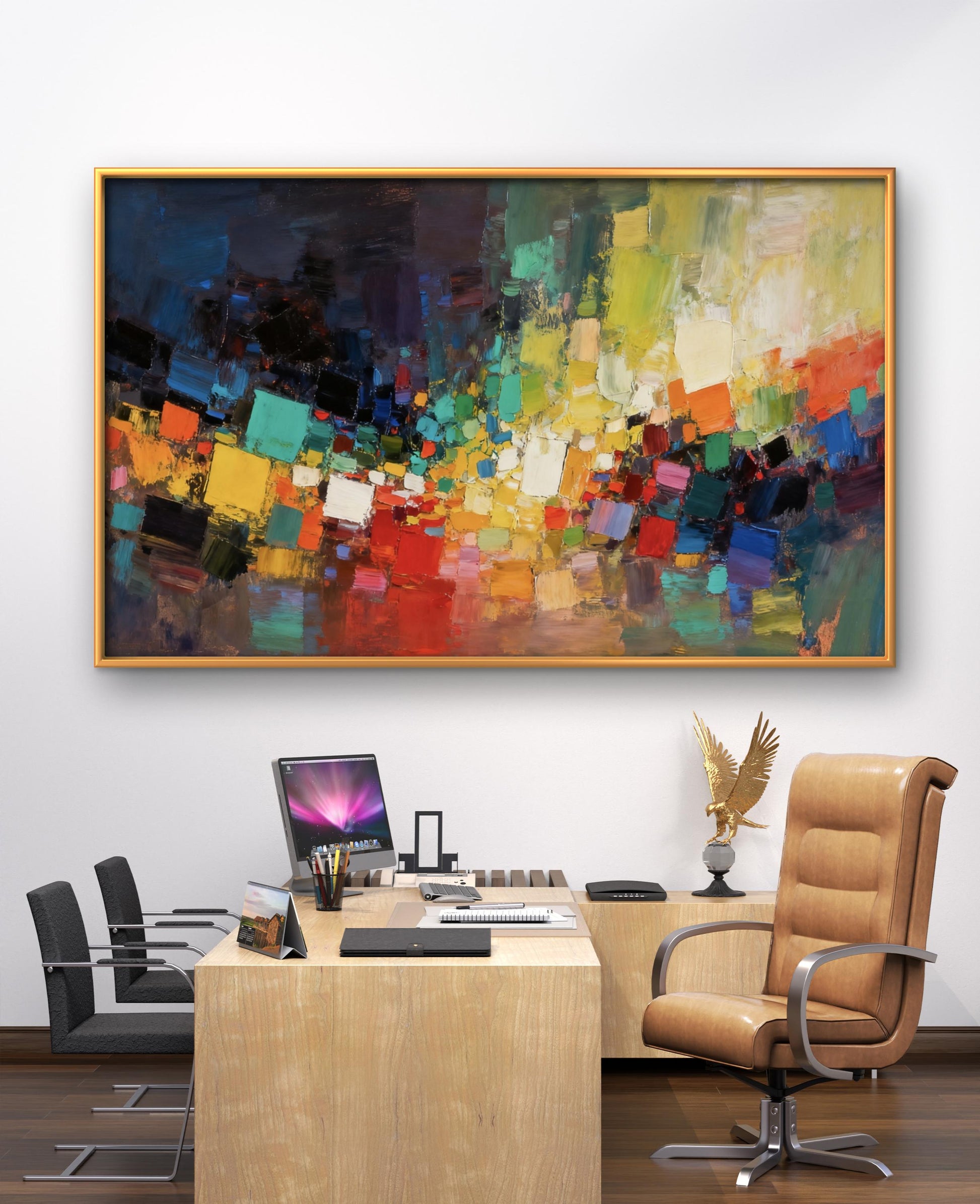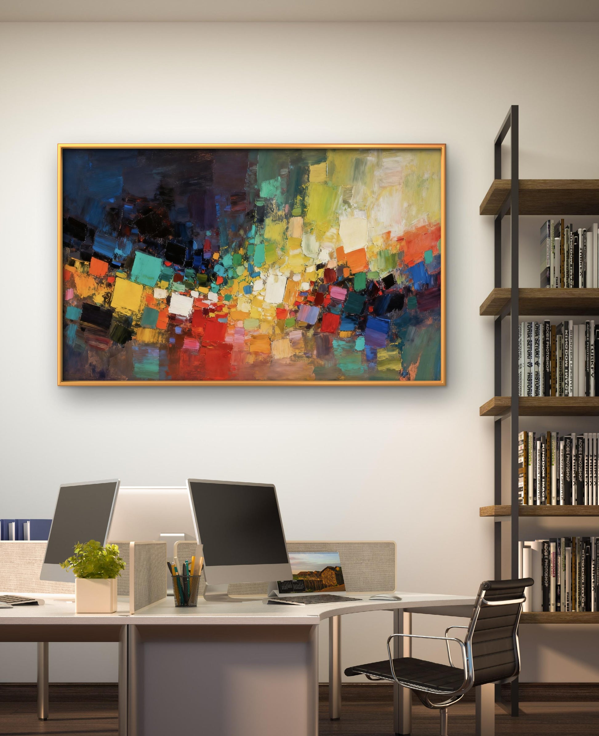 This exquisite abstract oil painting will add artistic flair and elegant charm to your space.