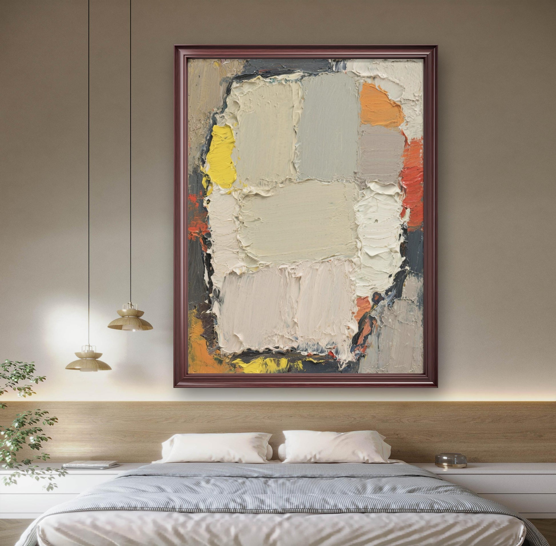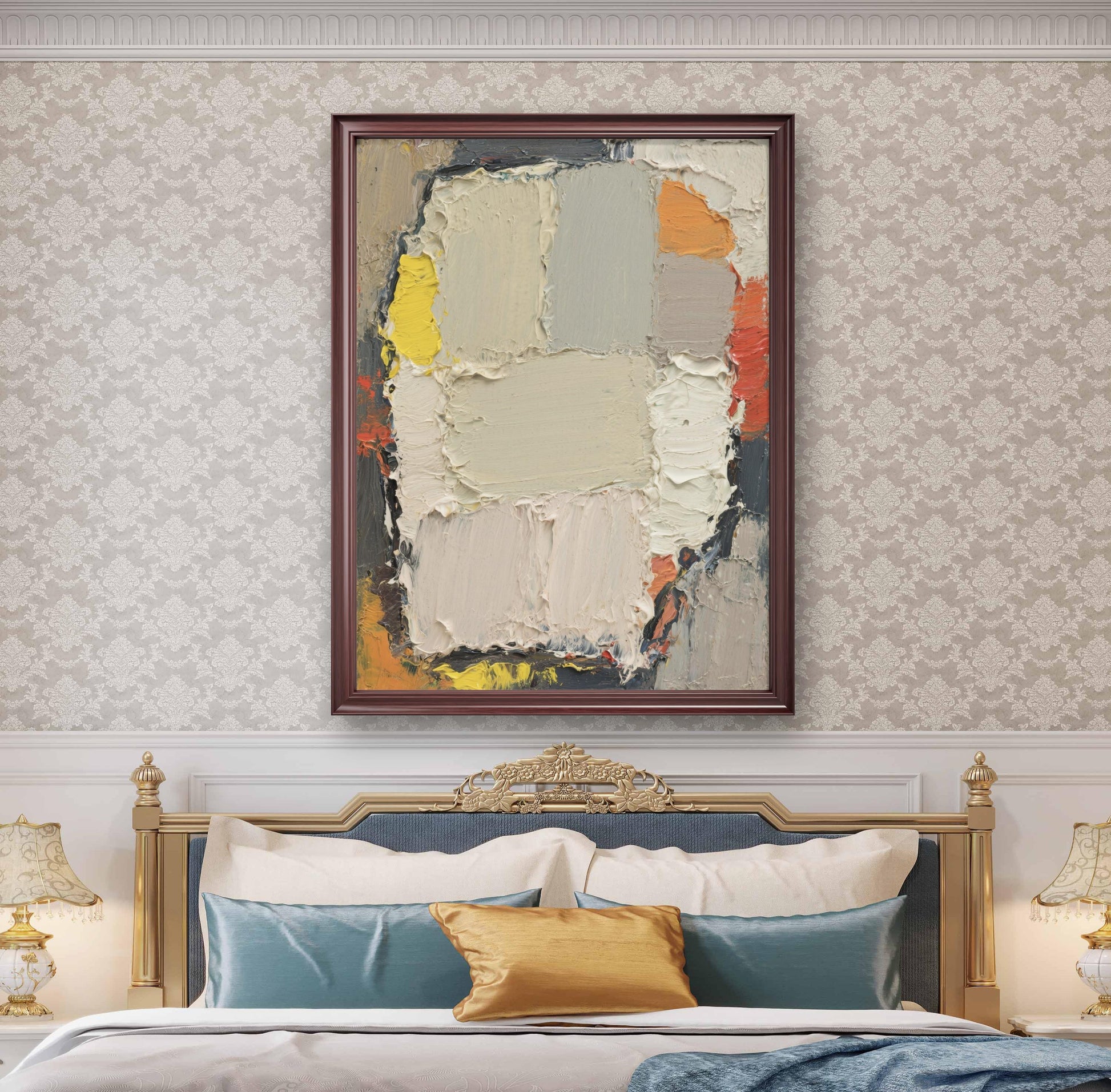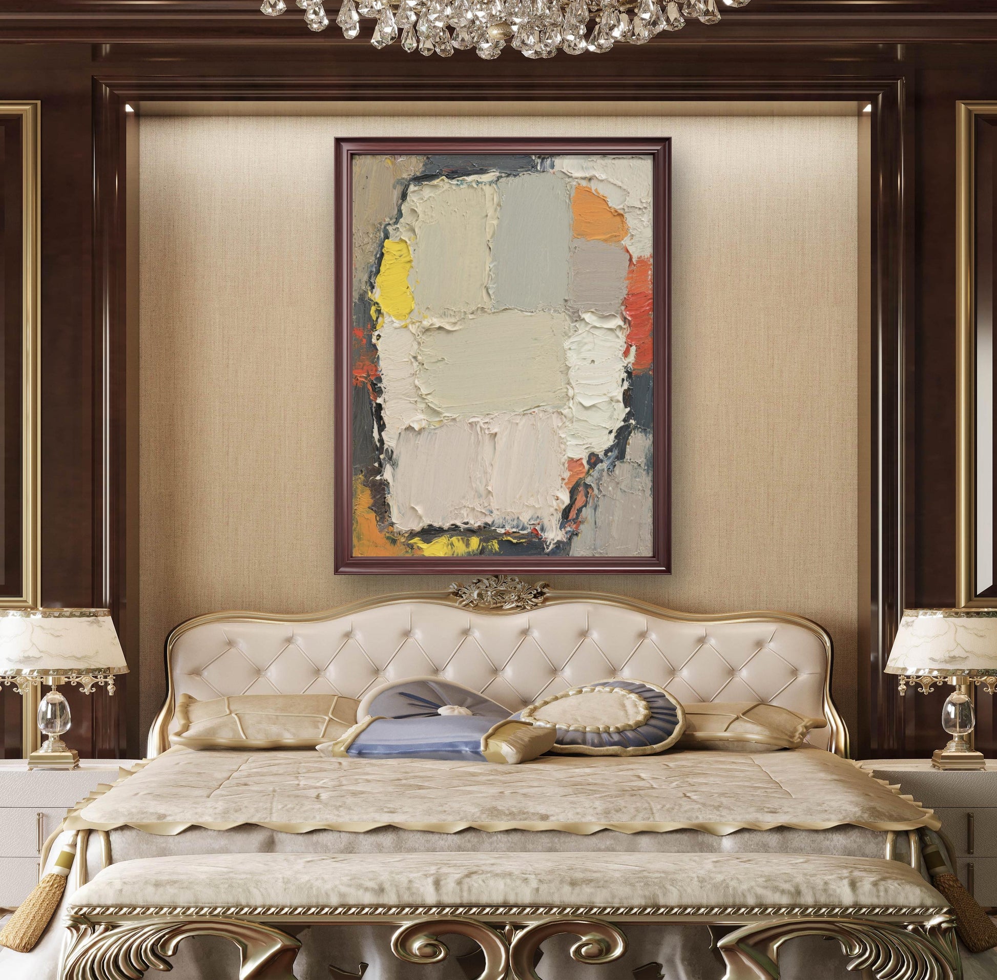 This exquisite abstract oil painting will add artistic flair and elegant charm to your space.
