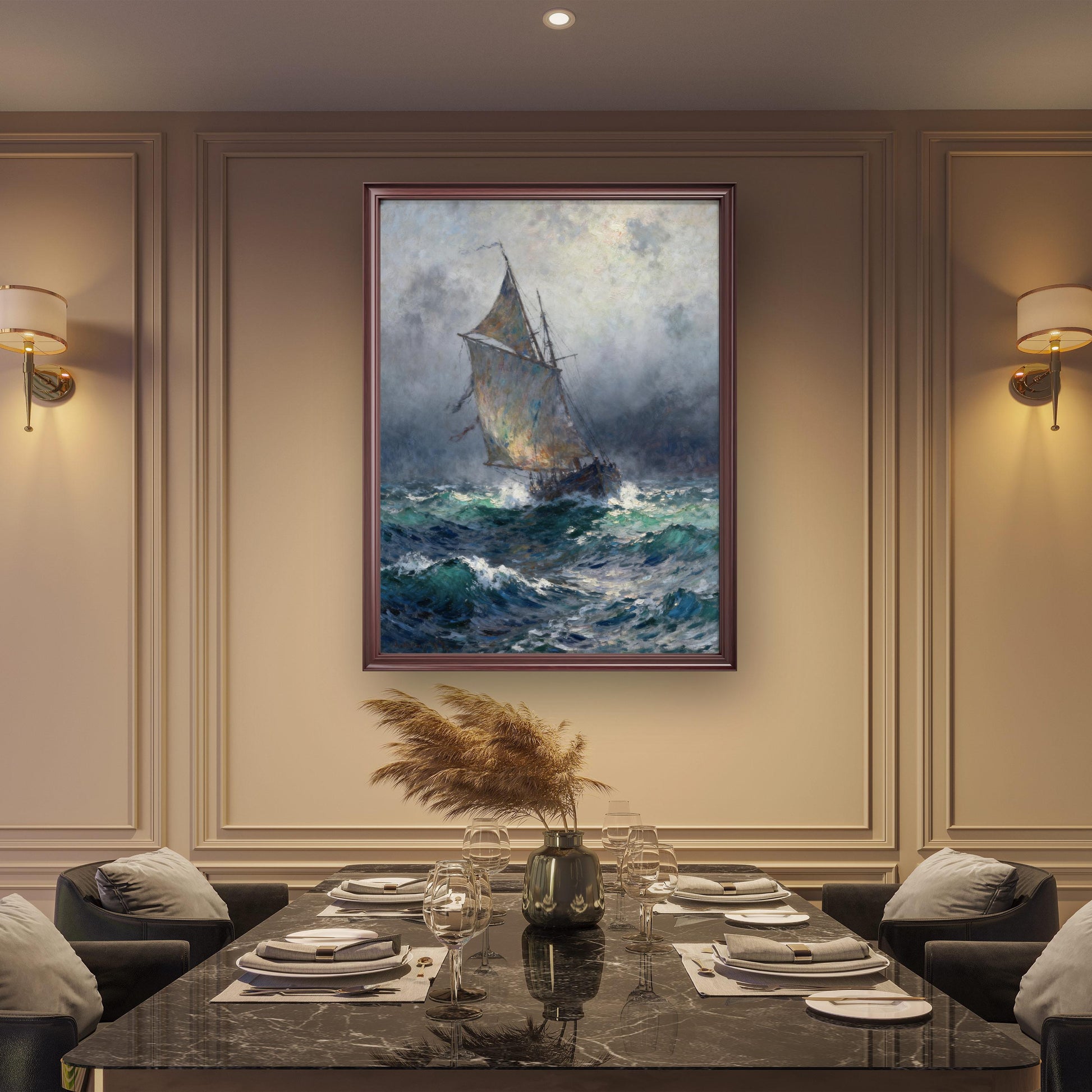 - Rich colors and masterful brushwork create a sophisticated atmosphere