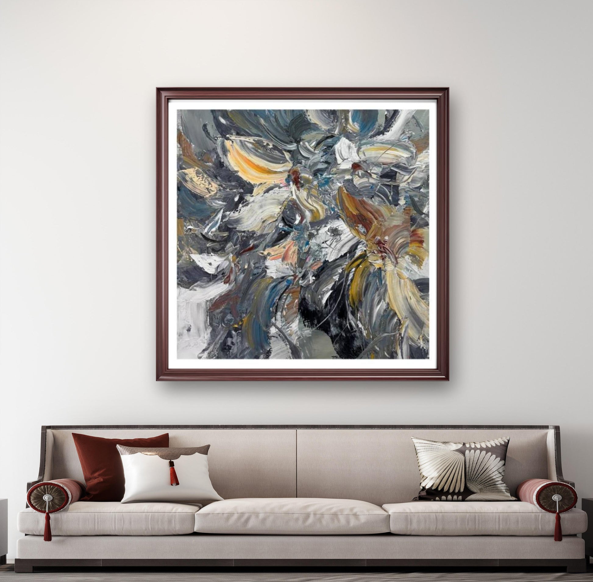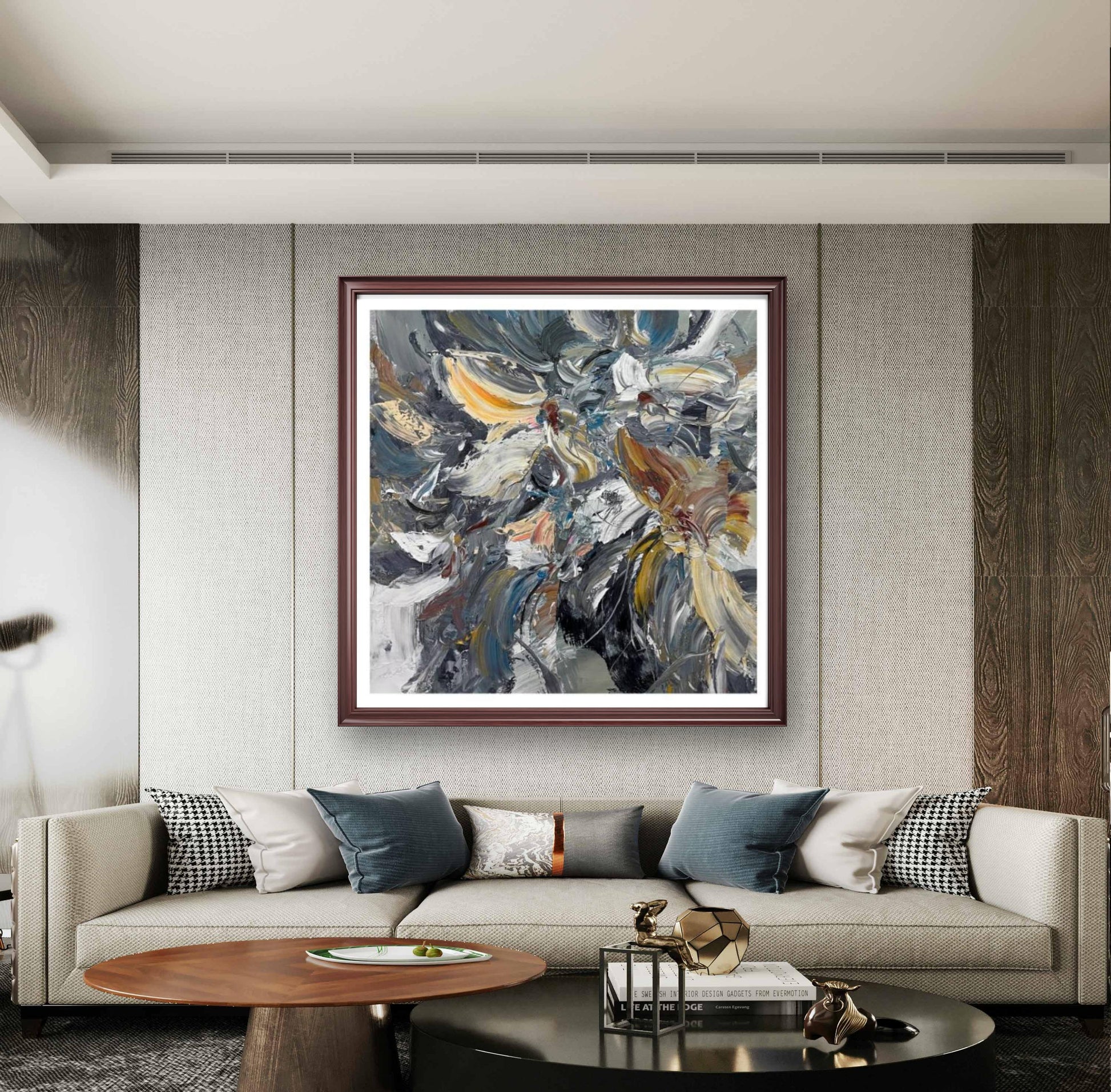 This exquisite abstract oil painting will add artistic flair and elegant charm to your space.
