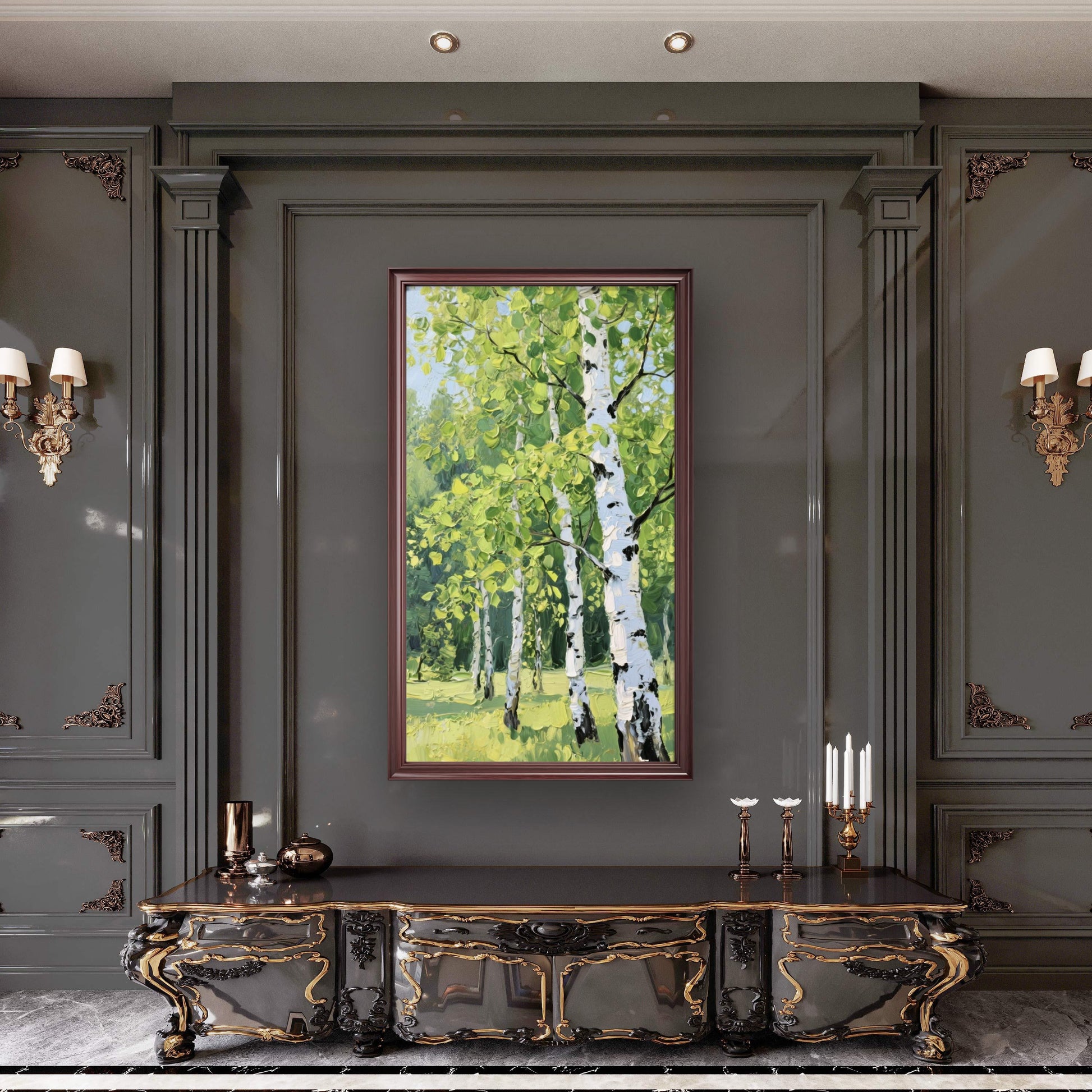 - Rich colors and masterful brushwork create a sophisticated atmosphere