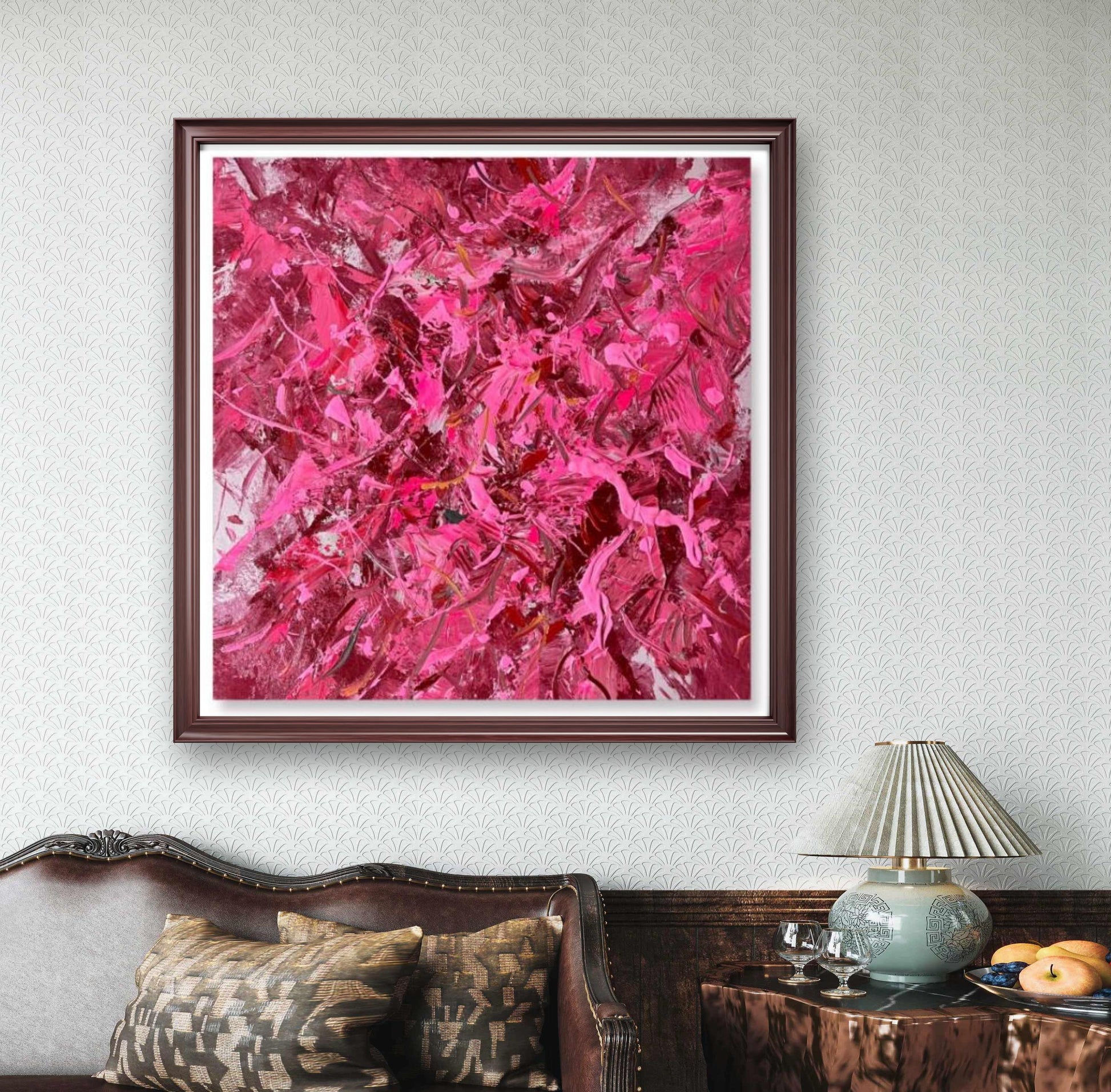 This exquisite abstract oil painting 'Red River' will add artistic flair and elegant charm to your space.