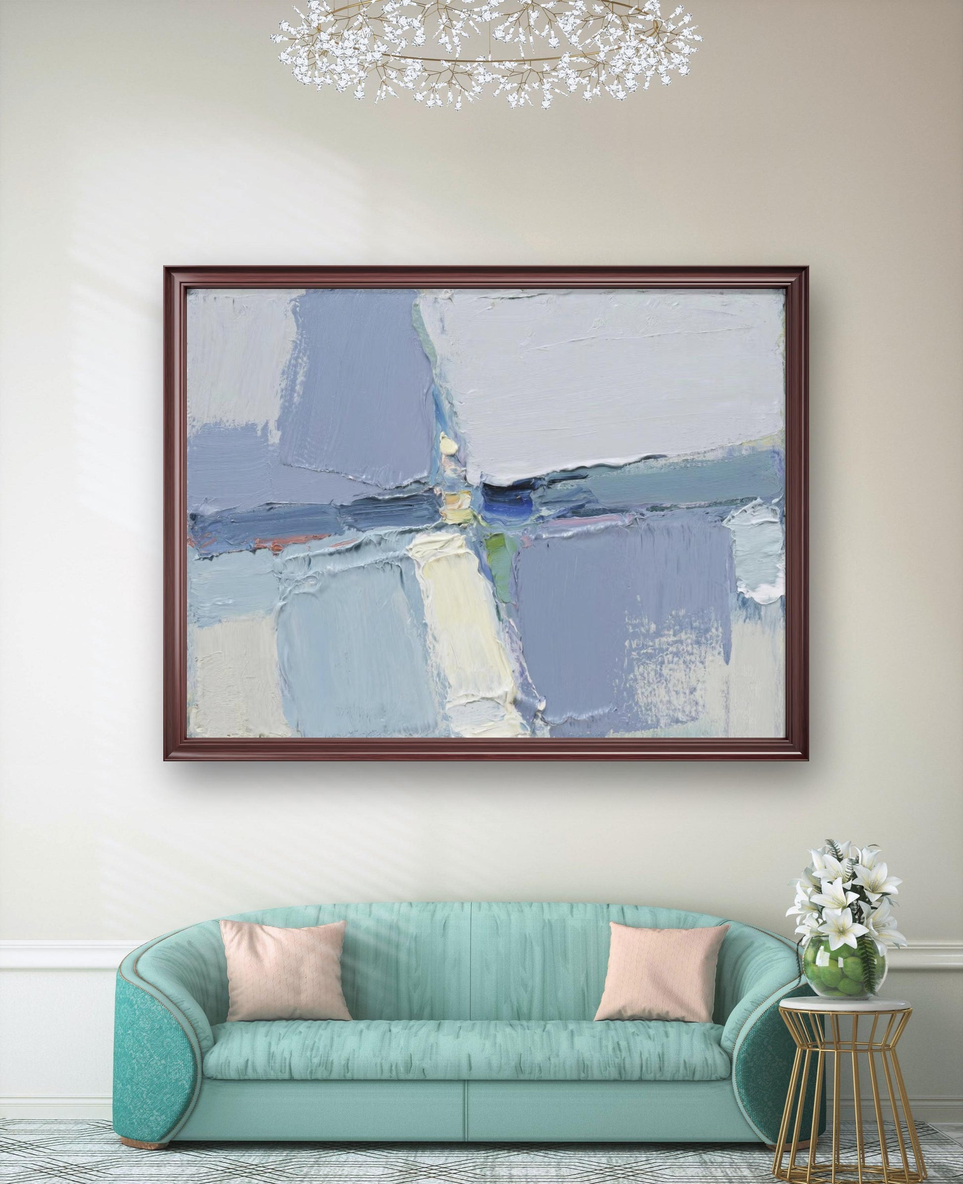 This exquisite abstract oil painting will add artistic flair and elegant charm to your space.